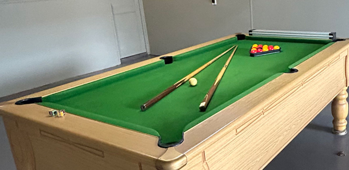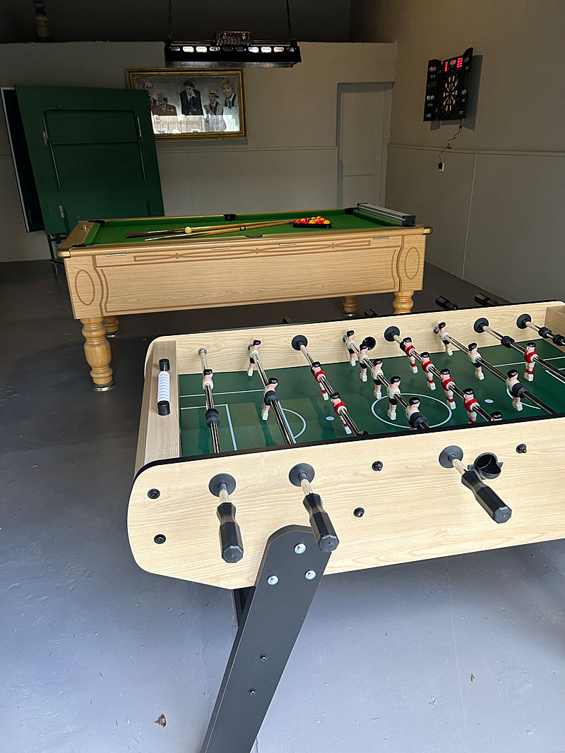 A separate building at the end of the arches (planted with jasmine) on this side houses the games room with a ping-pong table, table football, pool table and electronic dart board.