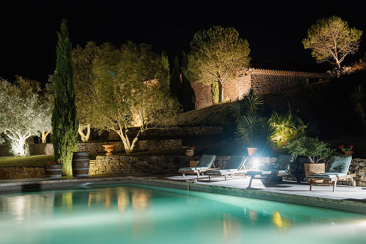 Domaine Carcassonne (The estate is actually larger than the whole of Monaco!) extraordinary landscapes, panoramic views, and untouched natural surroundings including its own lake. It is the ideal destination for those seeking a retreat in the South of France. At night, the estate transforms into a dreamlike setting as lights illuminate the surrounding natural beauty.