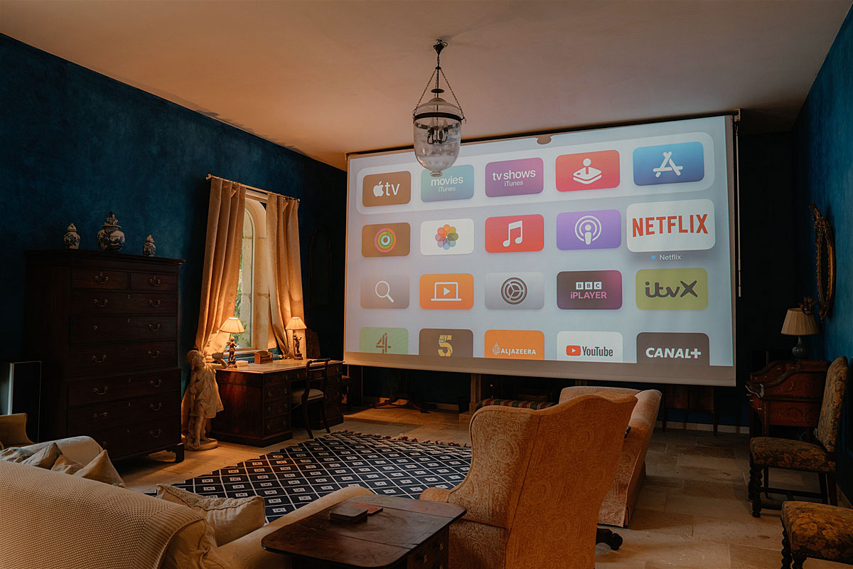 TV Satellite-TV - netflix etc can also be projected onto the screen in one of the sitting rooms.