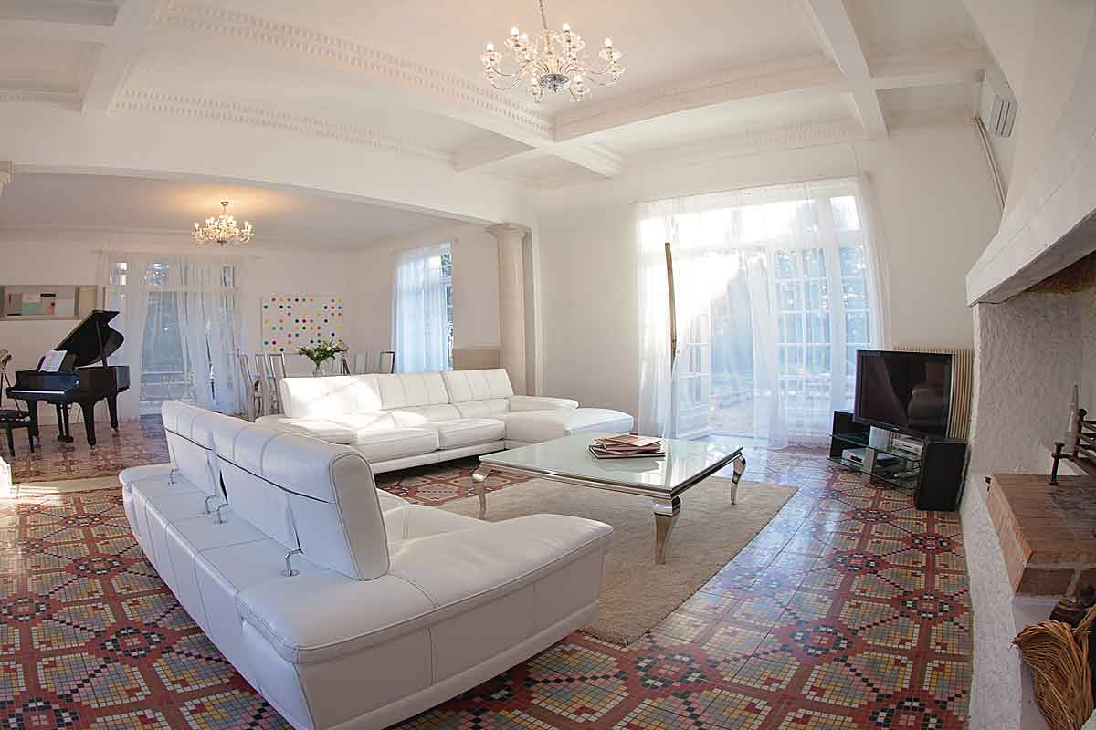 All over the house you will find antique French tiled floors and chandeliers, together with modern comforts and stylish contemporary touches. Of note is the stunning 60m2 main salon with its huge fireplace and grand piano. There is a cinema room, kitchen with all modern appliances, library, dining room and second sitting room with fireplace.