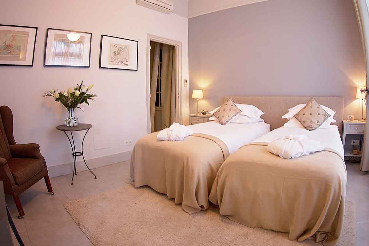 There is the possibility of a 7th bedroom on prior request and subject to availability. This is in the third wing of the building, which is a separate part of the house and is normally locked. It is more suited to 'staff' like a nanny or an au pair. The 7th bedroom can be configured with a double or two single beds, has a large en suite bathroom and is air conditioned. A supplementary charge applies. Please ask for details.