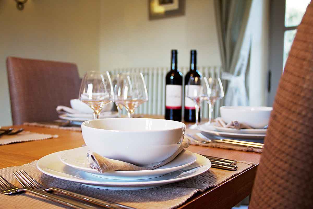 From late spring to early autumn meals are generally most enjoyable taken outside. Several wooden table and chair configurations are provided including integrated and separate parasols.
