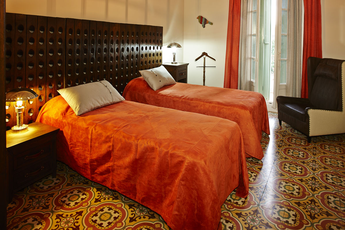 The second bedroom has twin beds (90cm x 200cm) which can also be made up as a "Kingsize" (180cm x 200cm) on request. There is an antique wardrobe and air-conditioning.