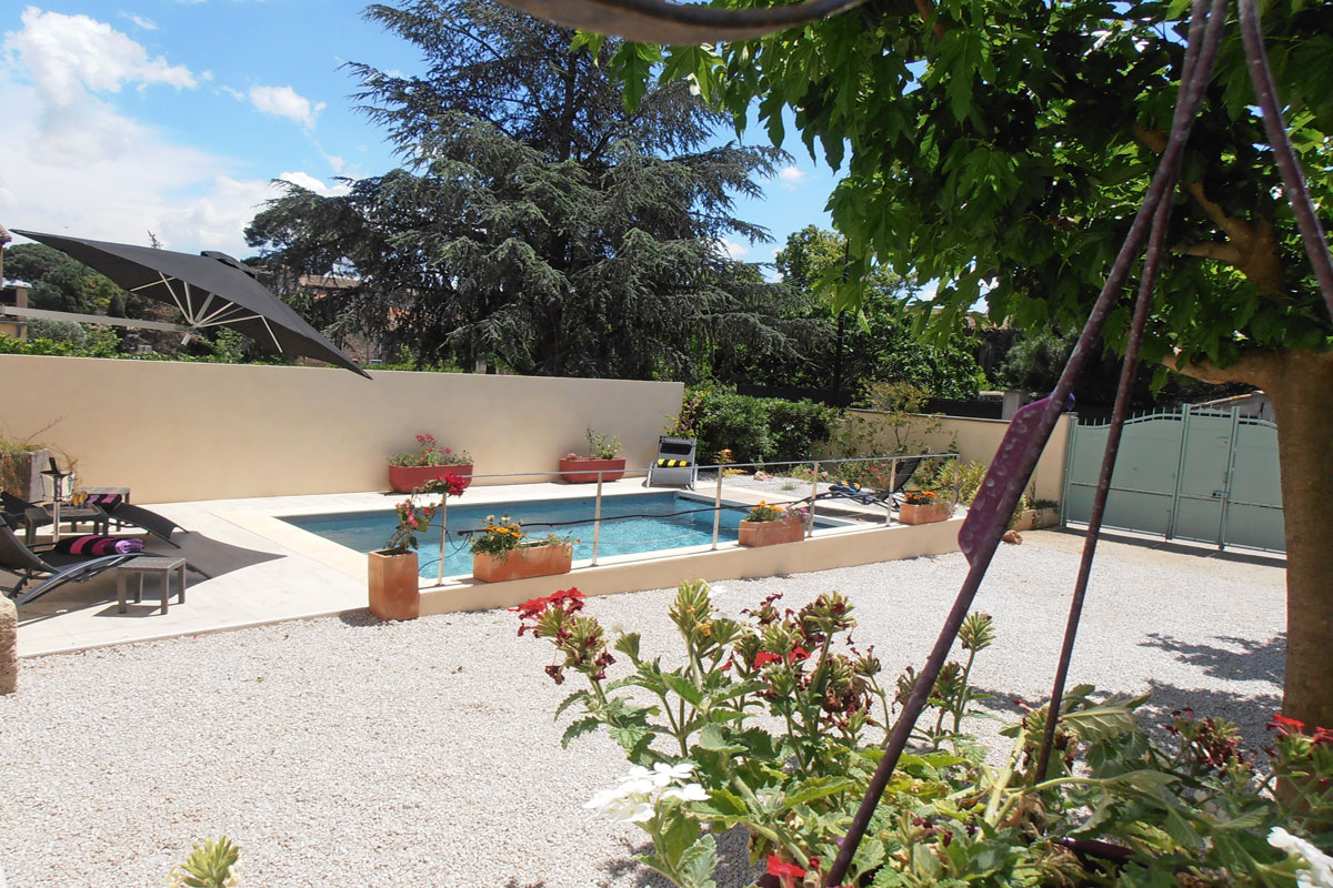 Details of the garden and pool of this lovely South of France 2 bedroom holiday villa