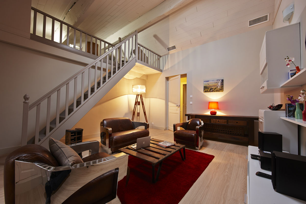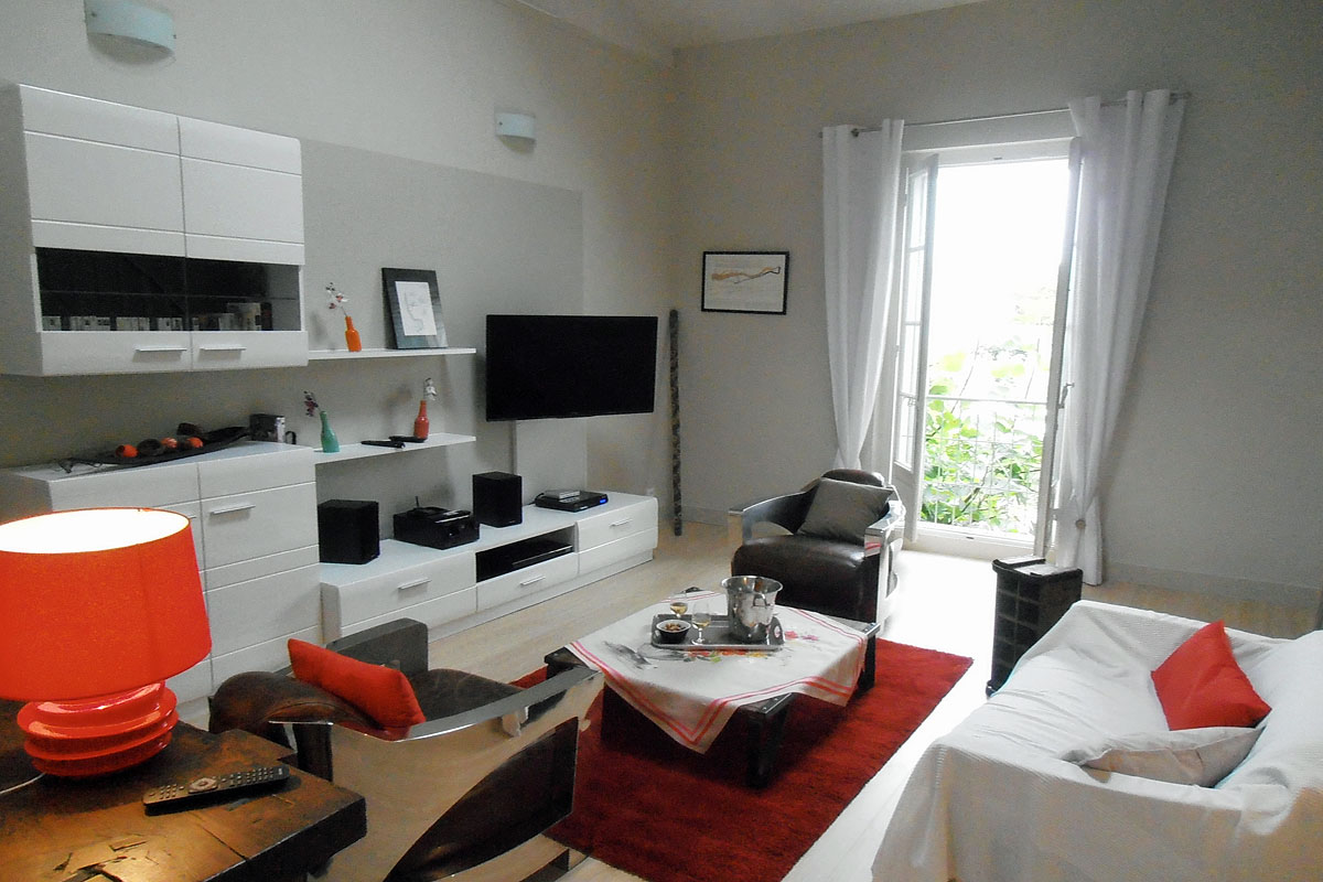 The modern living room is equipped with a two-seater sofa and 2 armchairs. There is a flat-screen television, Blu-Ray player, CD player with internet radio, should you wish to escape the sun!