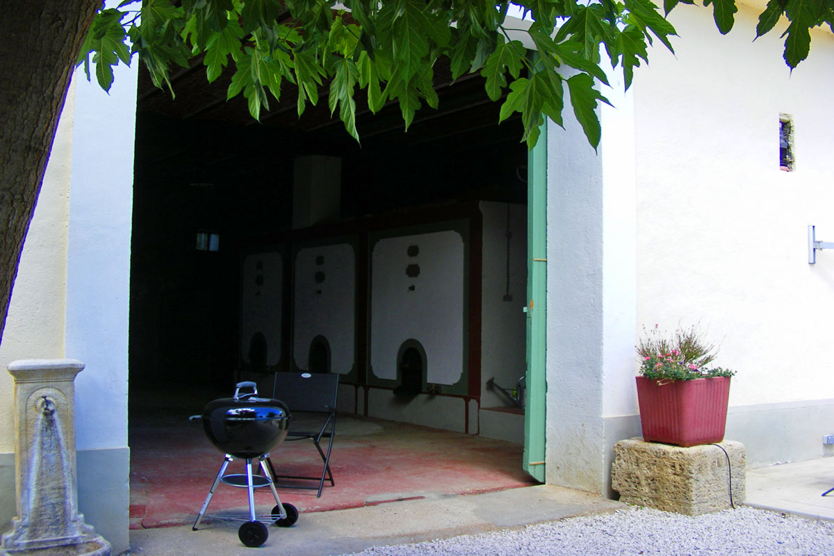The ground floor is the "Cave/Garage". It houses the original wine cuves and has a Laundry area with a sink and washing machine. There is a table and chairs for dining in the shade during the hot summer days. This is also the garage with space for up to 2 cars.