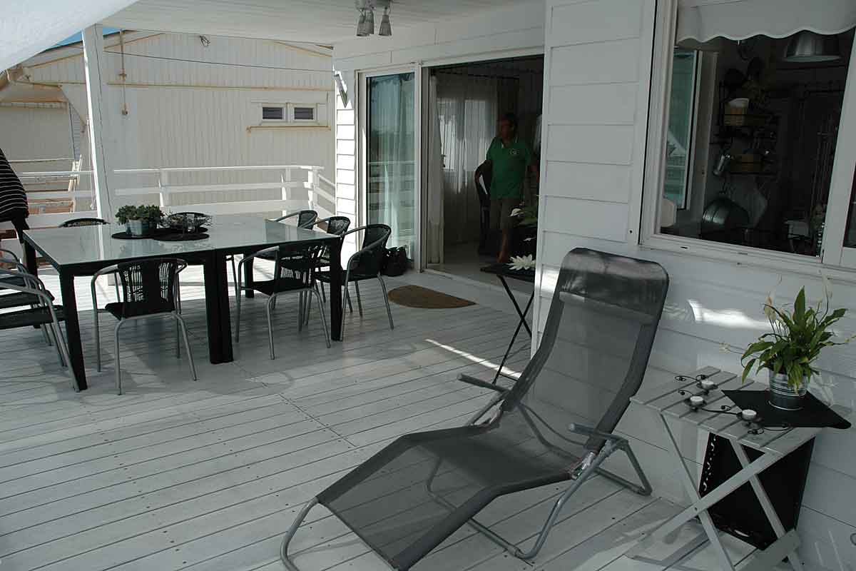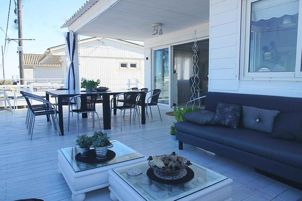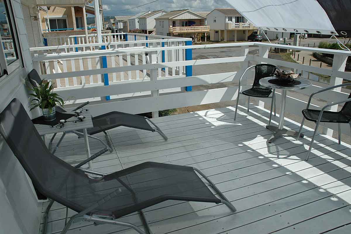 Holiday villa on the beach, this beachfront chalet situated on Gruissan plage near Narbonne, South of France has 3 bedrooms, beautifully decorated, an amazing air-conditioned living area and large terrace overlooking the Mediterranean sea and beach. Flexible arrival/departure days in Low Season .