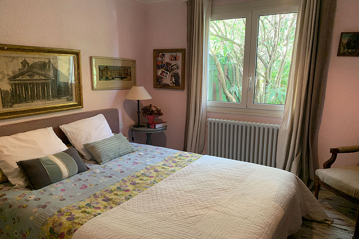This Languedoc holiday house is spacious with a large living room, a summer kitchen, a fenced off private pool, a very large master bedroom upstairs and a private tennis court. The living areas have air-conditioning (not the bedrooms). Owners are great fans of 'vintage' decor and the house feels homely and well lived-in with a touch of bohemian panache.
