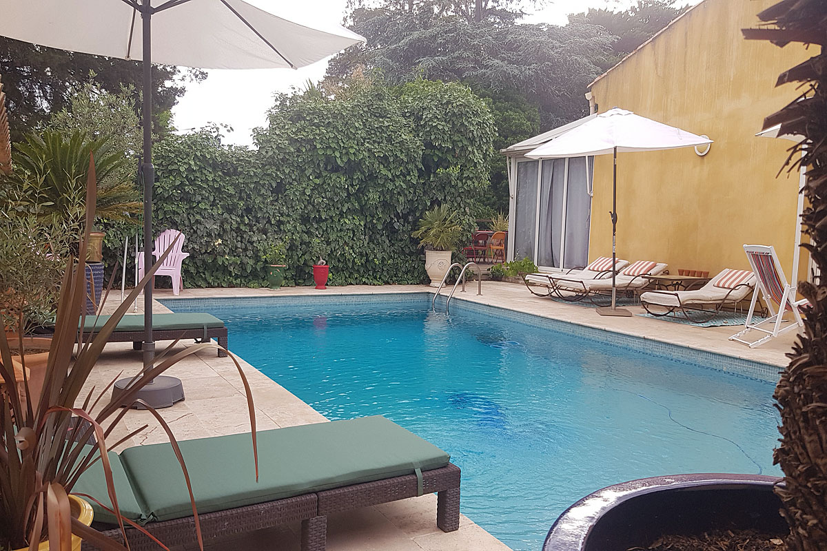 We have just returned from a fabulous week at Les 3 Pins - the second time we have stayed there. The property is a superb holiday base. The kitchen is very well equipped, if you want to self cater; if not, it is only a ten/fifteen minute walk into Pezenas to access the many good restaurants there. Pezenas is a lovely old town. There are four good bedrooms, with the upstairs master being particularly spacious and comfortable. There are several places to eat and to sit, both inside and out, so it's a very relaxing place to chill out, whatever the weather. We were lucky, so we spent a lot of time sunbathing around the pool and cooling down in it. The tennis court and table tennis table were also put to good use during the cooler parts of the day. The owners are very welcoming, relaxed and amiable hosts. They don't intrude, but are always available nearby if needed. We can't recommend this place highly enough and we will certainly book again in the not to distant future. Steve, South France Villa's client June 2019