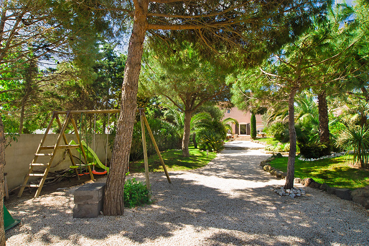 The holiday villa has 3 large paved terraces with garden furniture. One is on the sea side and the other 2 on the garden side of the house.