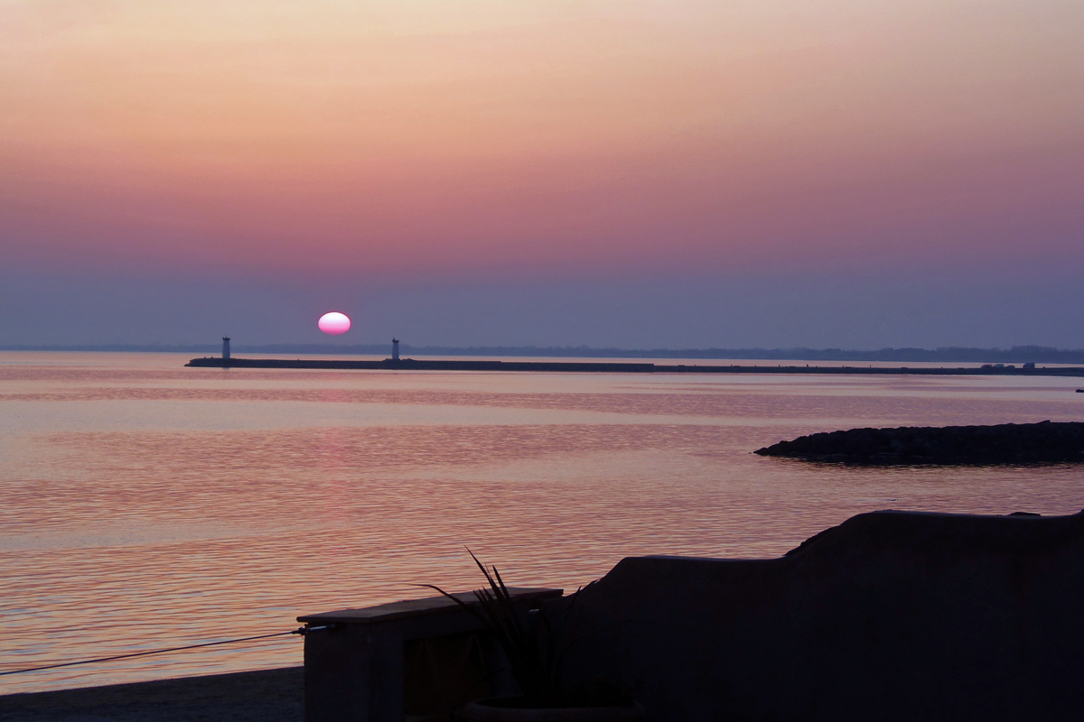 A ten minute walk along the sand will bring you to boulangeries, cafes and restaurants either in Grau d'Agde or Rochelongue.