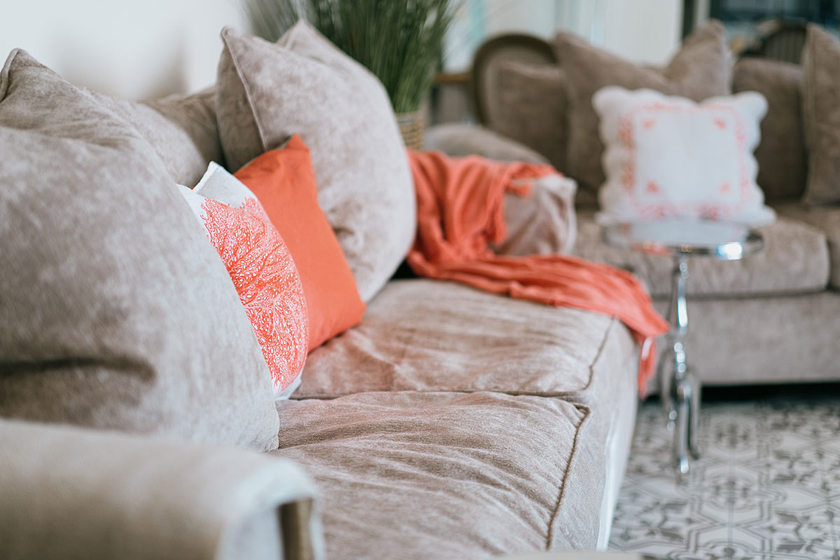 The lounge is as you enter the property, with 2 comfortable sofas. To the right is the fantastic kitchen and dining area. No expense has been spared in the transformation of this bespoke kitchen. An authentic butcher's block, large American style fridge freezer, breakfast bar with stools. French doors lead to the large outside terrace and swimming pool.