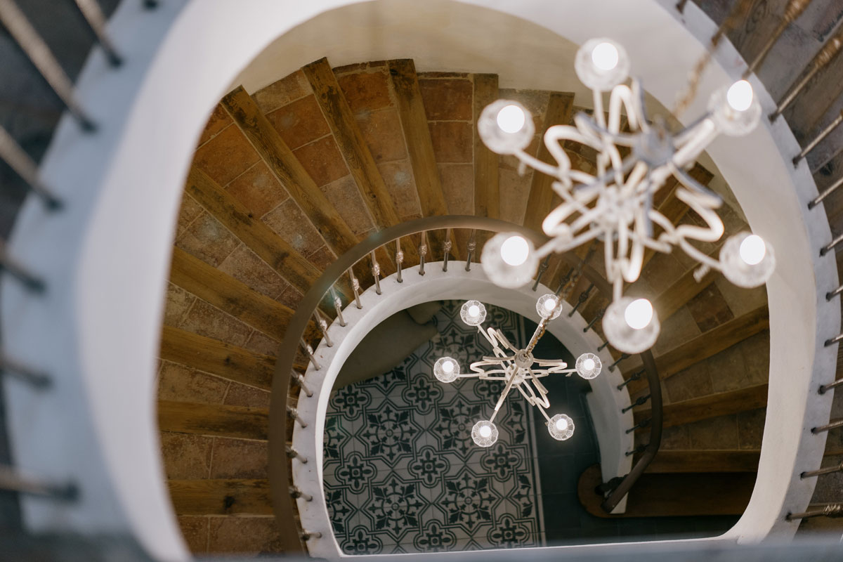 The spiral staircase takes you up to 2 of the bedrooms. (This can also be accessed by the main stairs)