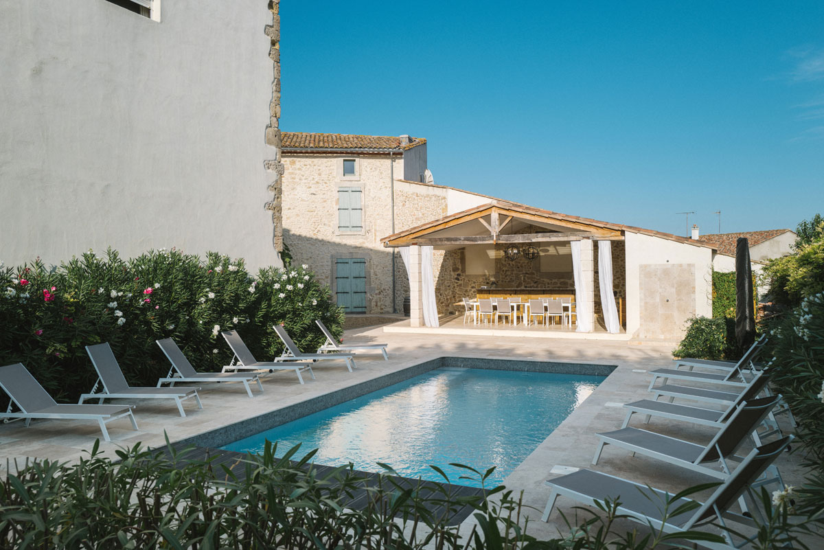 South of France Manor house, in a lovely Languedoc village, beautifully renovated to an extremely high standard. 5 bedrooms and bathrooms, air-conditioning, heated pool, amazing outdoor lounge and bar. Walking distance to restaurants, and local shops. Reduced prices for 6 people out of season. FLEXIBLE ARRIVAL DAY ALL YEAR.
