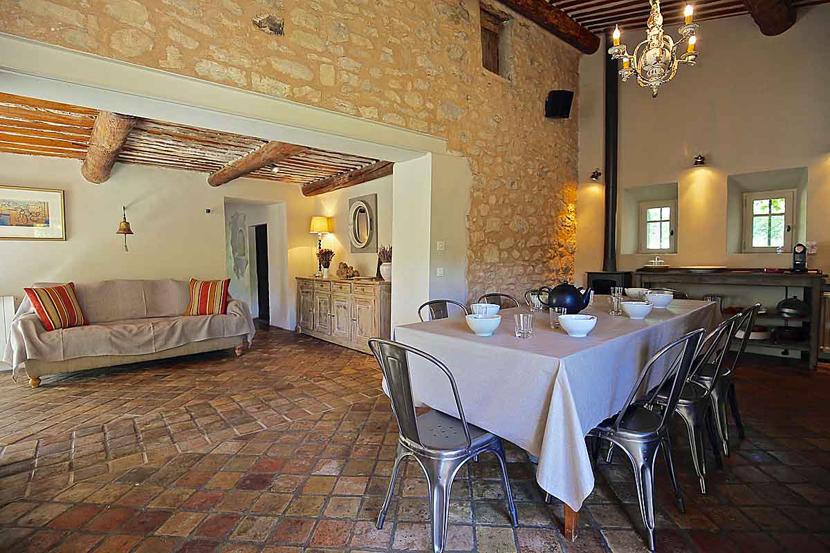 The open plan kitchen is traditional and very Provencal! It is excellently equipped and connects with the dining area.