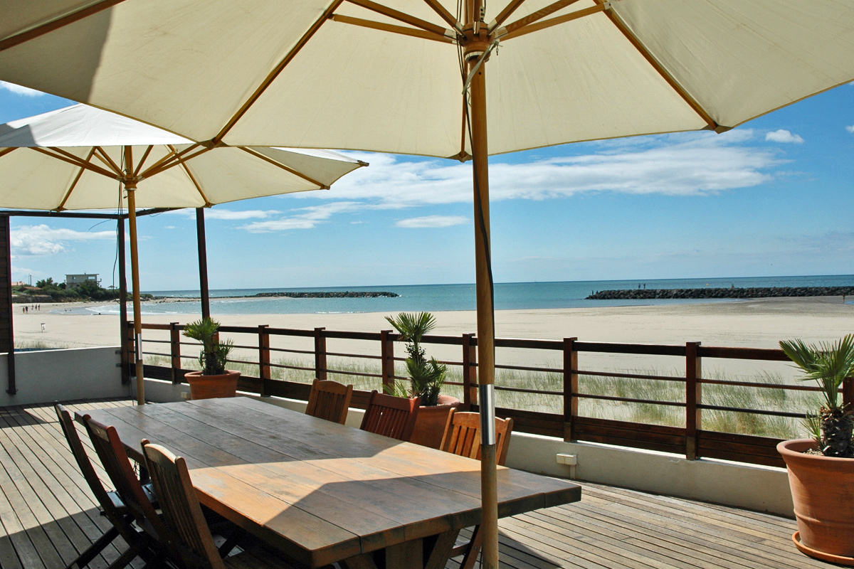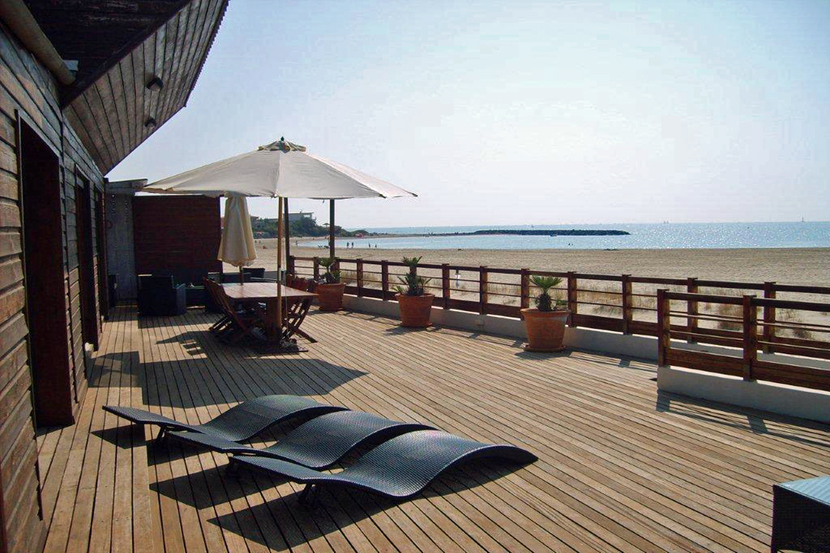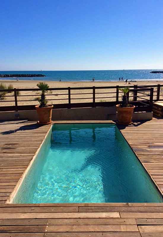 Superb South of France Chalet to rent directly on the Mediterranean beach at Rochelongue, near Agde in Languedoc with heated plunge pool! Stunning sea views. Price is for 6 people.