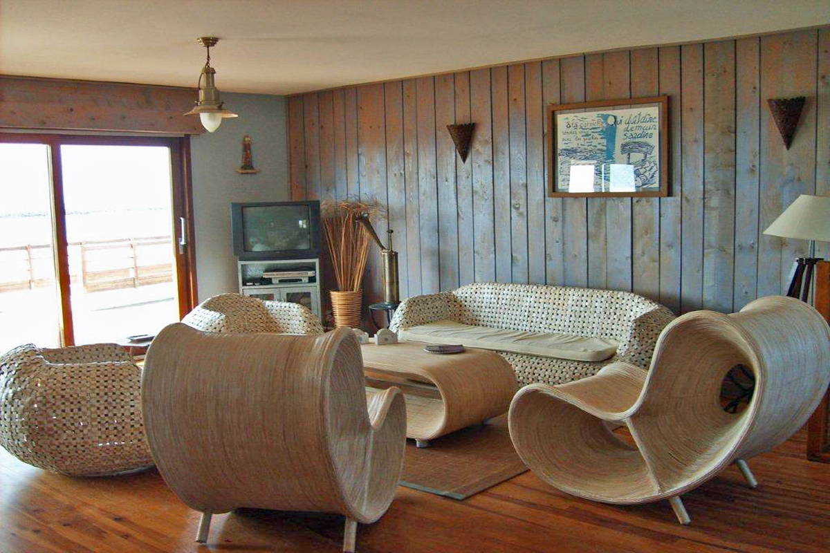 The downstairs of this beach chalet:
