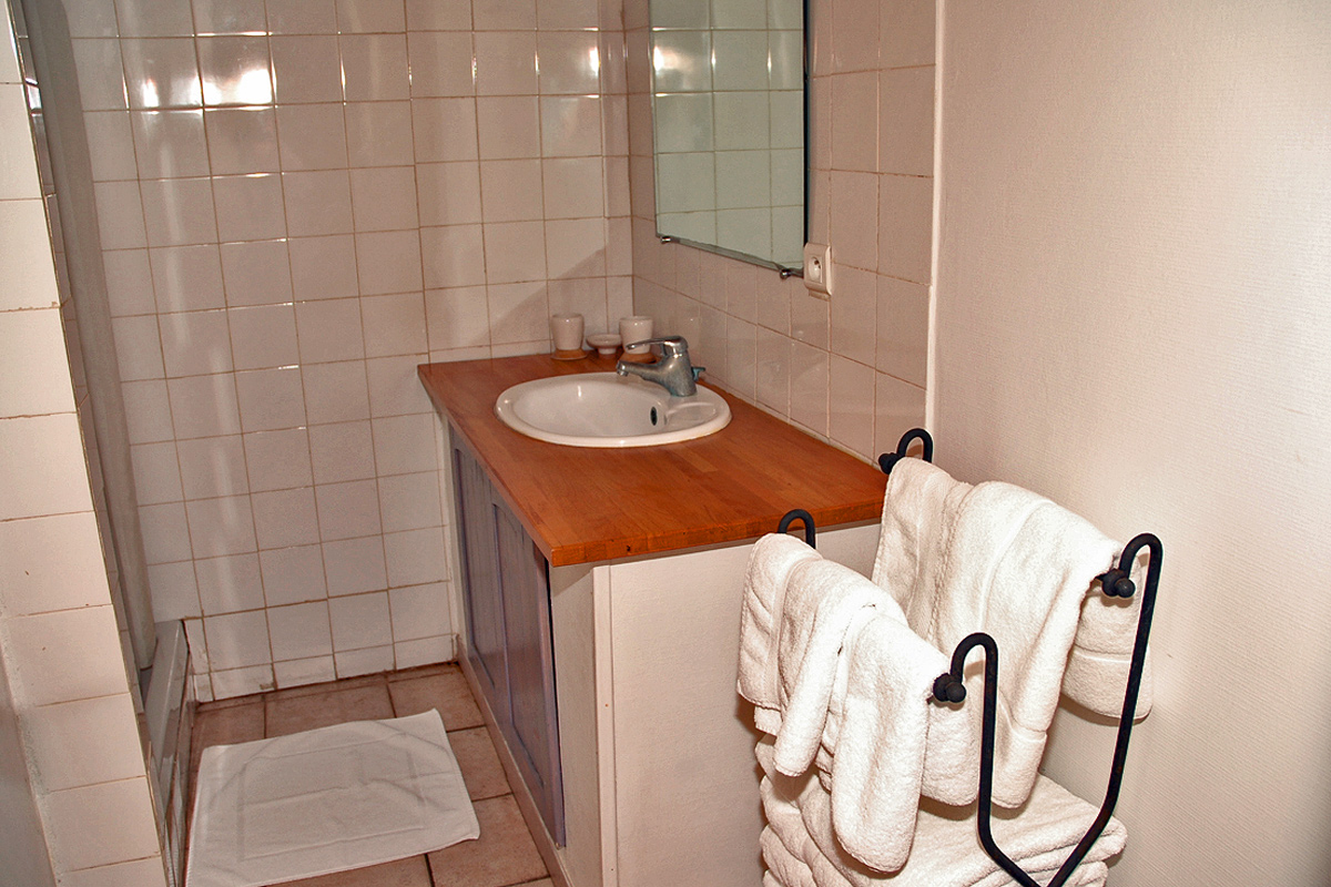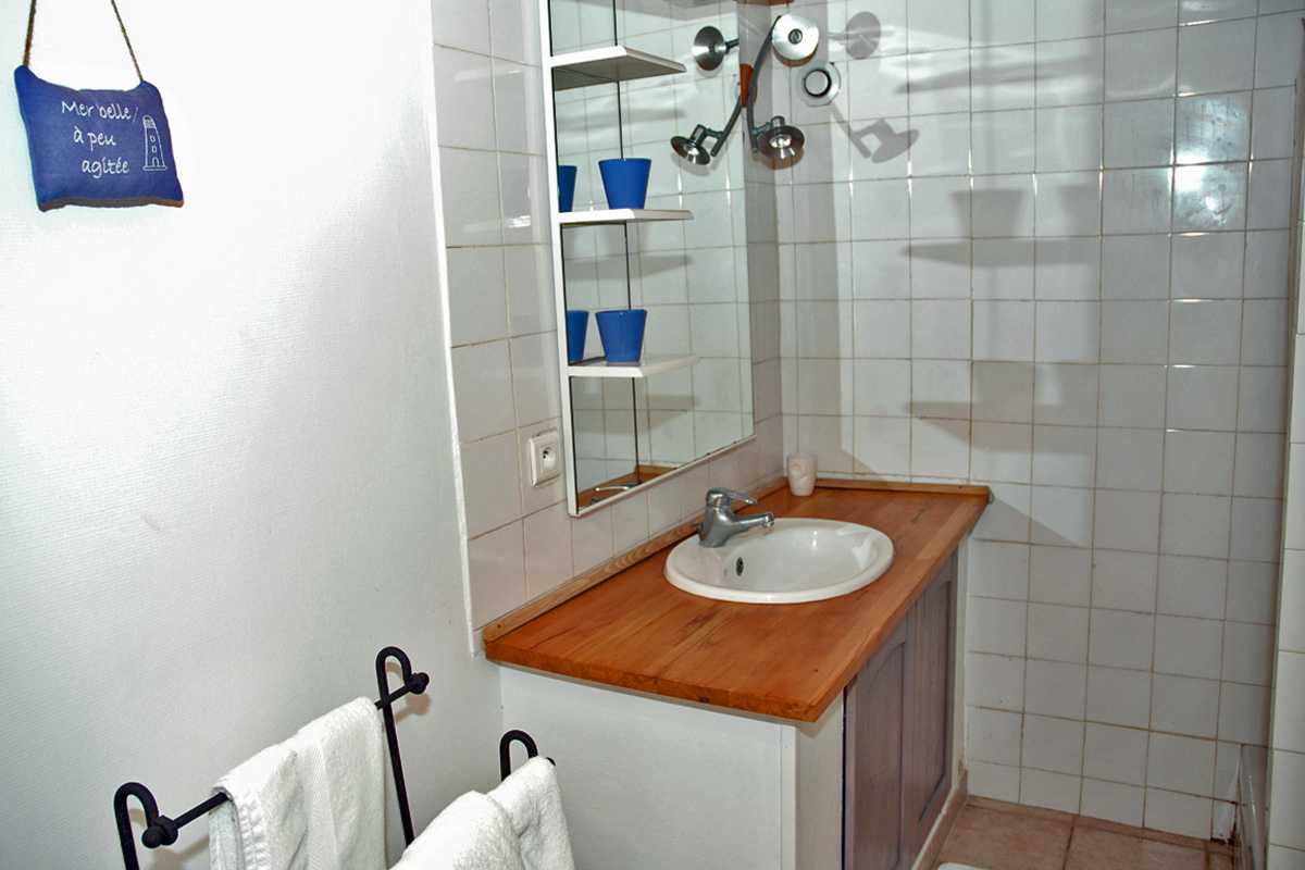 A dozen steps lead down from the terrace to a gate that opens directly onto the French sandy beach. There is an outdoor shower (cold water only) just outside the gate to wash off all the sand before you come back up to the terrace. More steps then lead down from the terrace to the BBQ area.