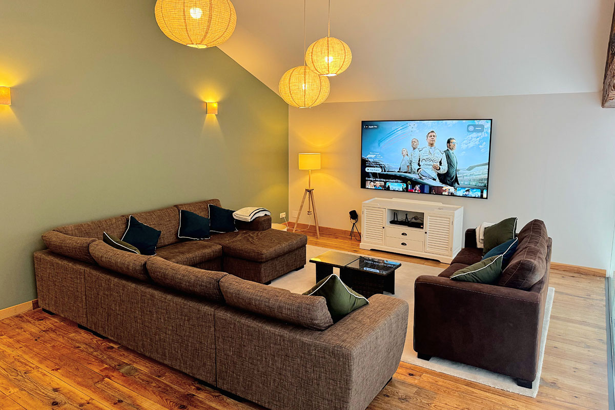 The ground floor is spacious and open plan, the lounge area has comfortable sofas and a tv.