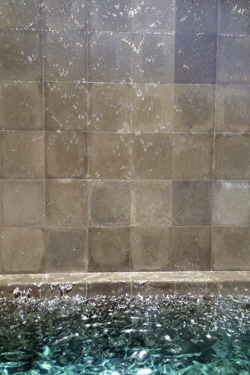The private heated plunge pool has a 'wall of water' feature continuously cascading down the striking local black basalt - stunning against the greenery of bamboo and palms.