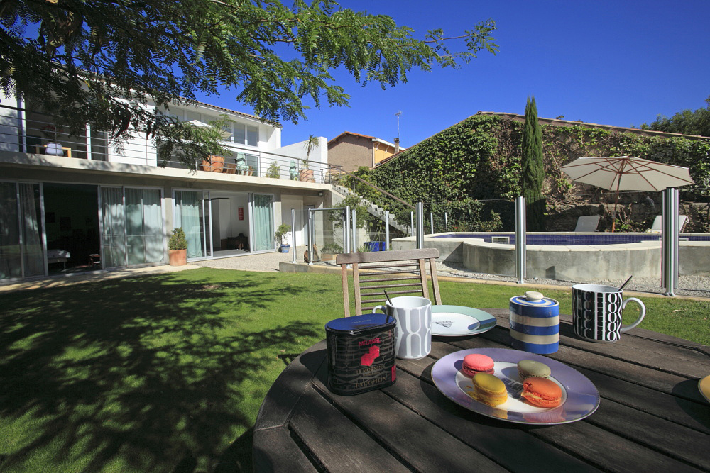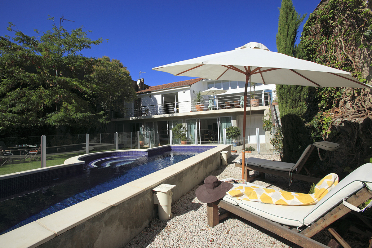 Pezenas, Languedoc, South of France, stunning modern villa with 4 air-conditioned bedrooms and 3 bathrooms, 15m fenced lap pool. Just 2 minutes' walk from bustling Renaissance Pezenas town with award winning restaurants, market and artisan shops. Now taking 2026 bookings at 2025 prices.