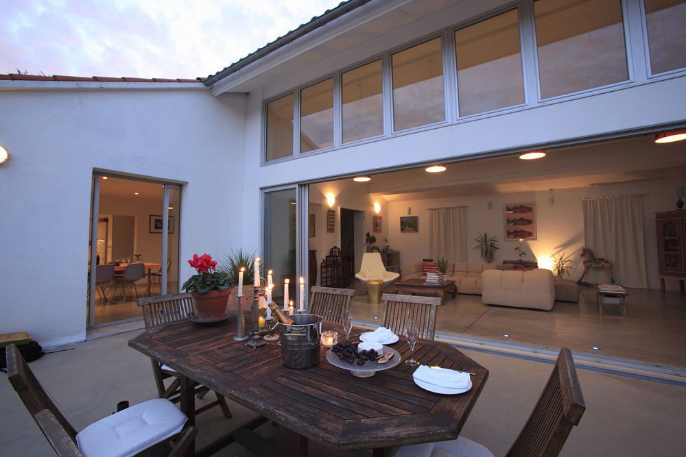 This contemporary designer family home in Languedoc, South of France is just 2 minutes' walk from the centre of Pezenas. The holiday villa has a fantastic open plan living room, dining room and kitchen with glass doors which open out onto a splendid terrace overlooking the pool.