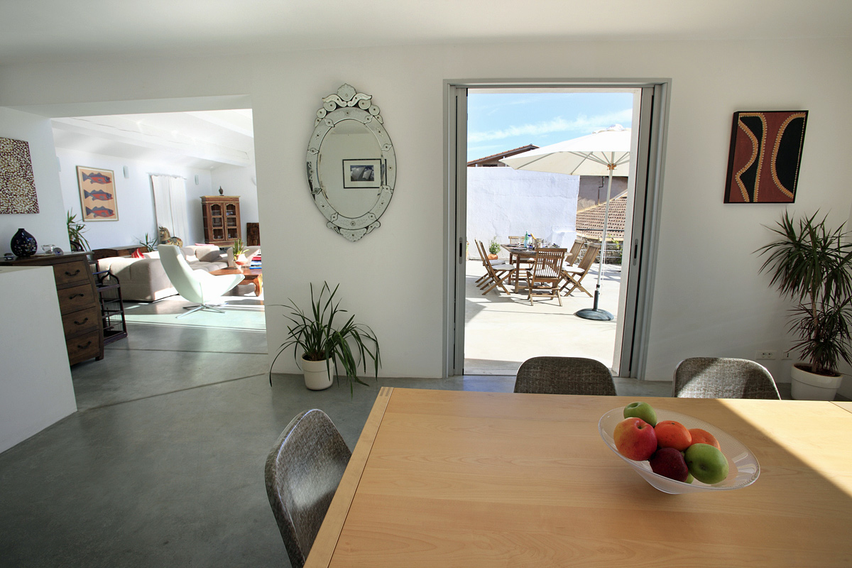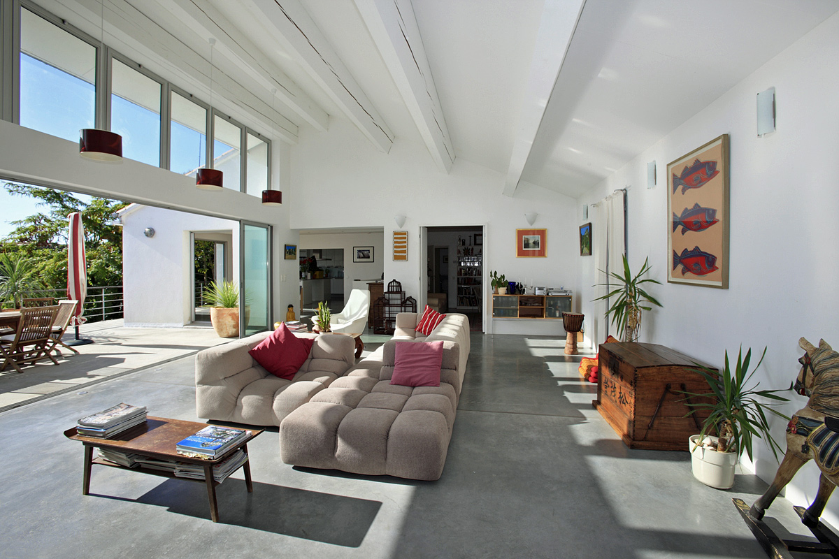 The 350m2 : living and dining rooms - fabulous modern open plan area ideal for entertaining, Modern décor and polished concrete flooring as well as extensive designer lighting throughout. Furnishings give an East meets West ambiance.