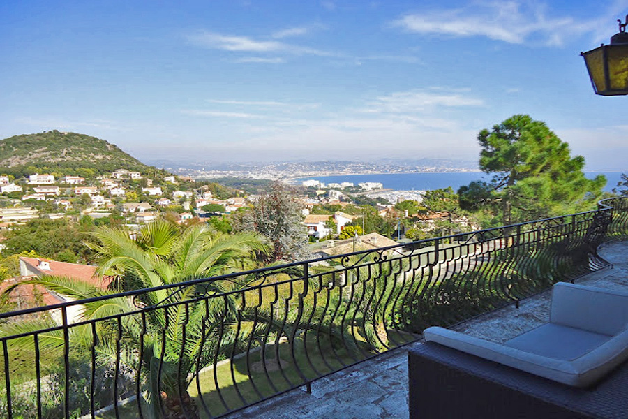 South of France holiday villa to rent in La Napoule, near Cannes, Cote d'Azur, Air-Con, 5 ensuite bedrooms, 13m long infinity pool, stunning views of Cannes bay and beyond, walking distance to beach, shops and restaurants. 2026 Prices same as 2025.