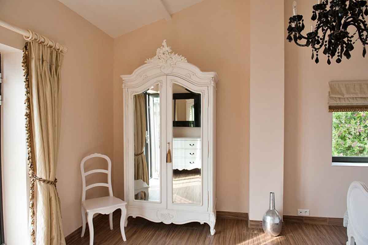 King size bed, large wardrobe space, luxurious bathroom with bath, separate shower, double wash hand basin, bidet, wc. Two sets of French doors and Juliet balconies.