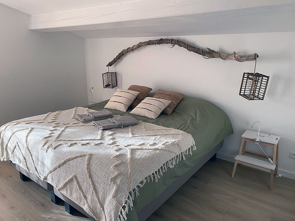 Ground floor bedroom, with double bed (180cm), en suite shower room and wc.