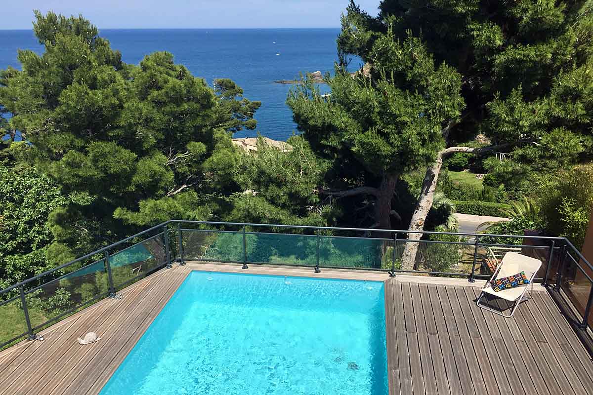 At the bottom of the garden there is a gate for access to the road, turn right and after approx 5 mins you will see the bus stop where there is a path leading down to a 'cove' beach - Baie des Rageurs. Alternatively turn left through the gate and when you reach the Trois Mas Hotel go down the steps to access the stony beach in front of the hotel which is open to the public.