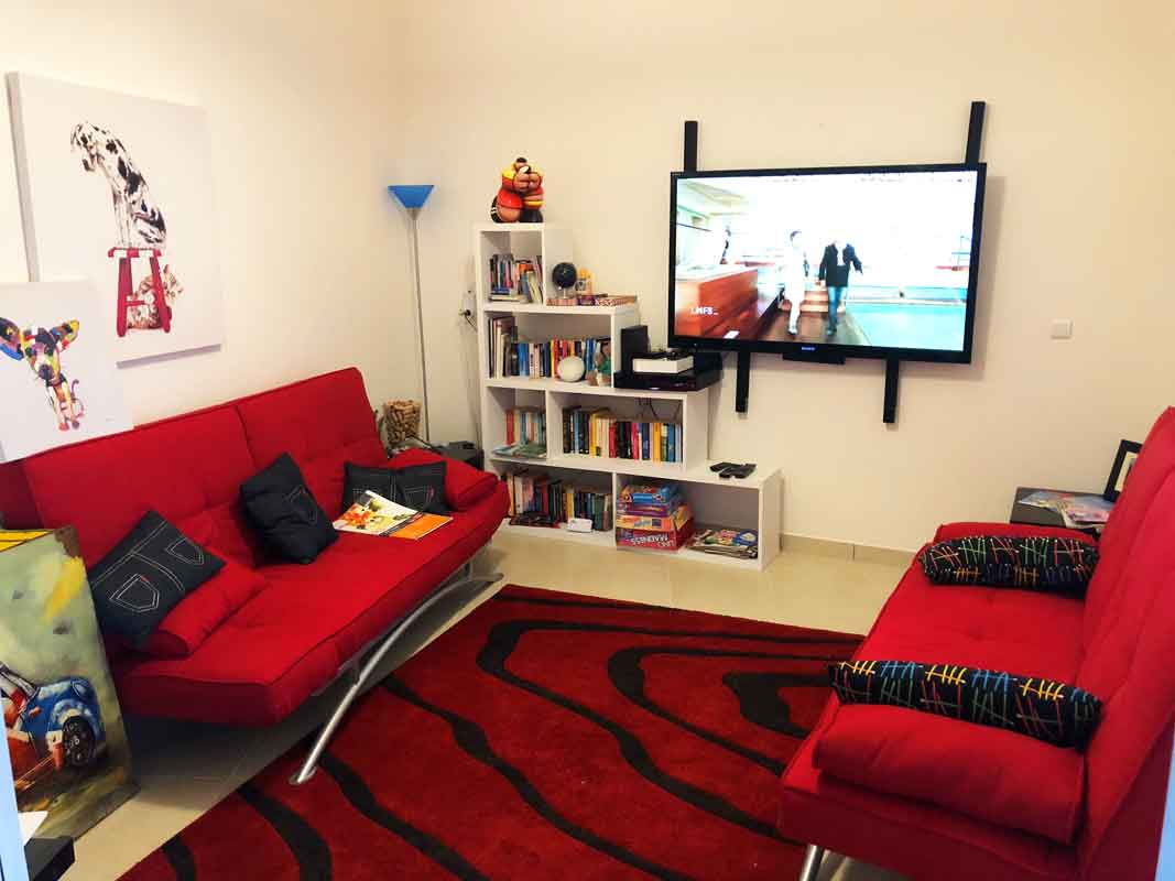 TV in the Cinema room - wall mounted screen with UK TV (can be watched independently from living room TV)