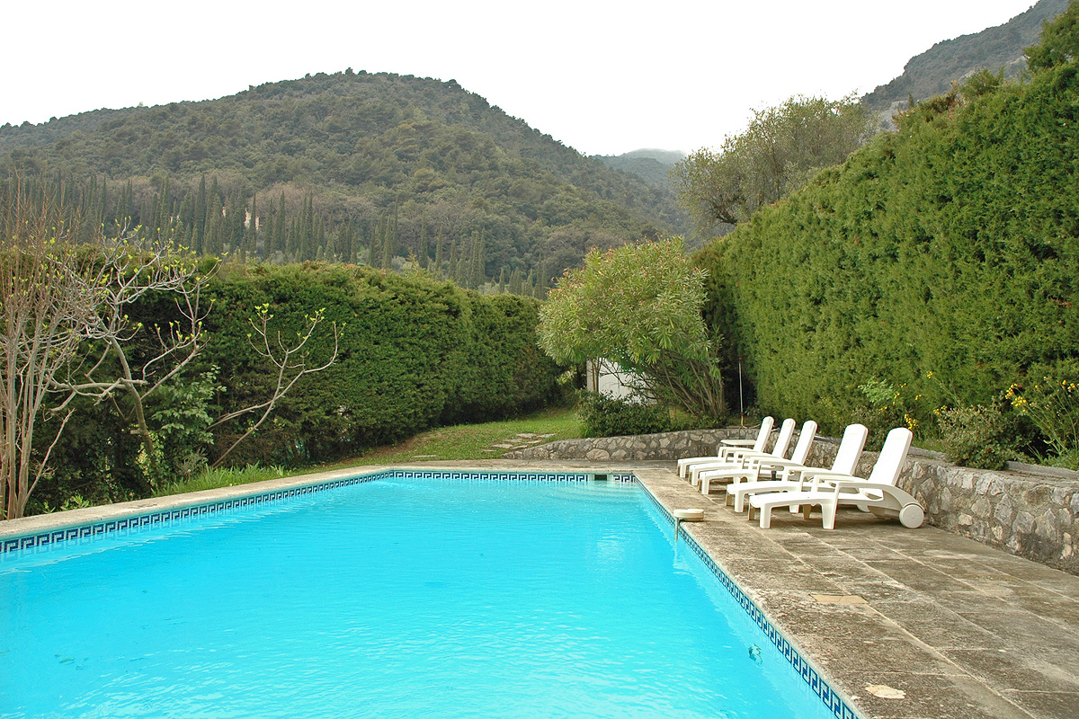 The grounds are enclosed and the garden is mature with palms, oleander, magnolia, fir trees and olive trees.