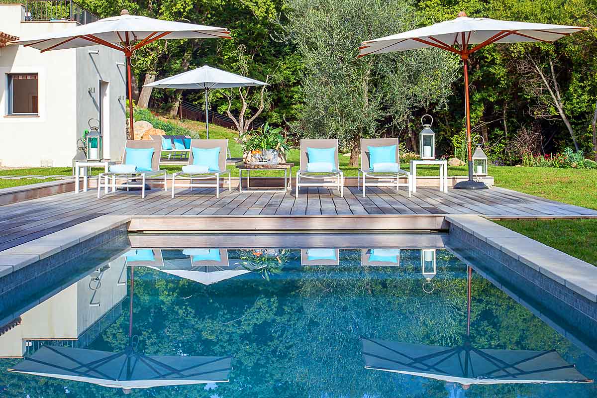 Villa Jasmin is a spacious modern holiday villa situated in an elevated position with commanding views over the valley and set below the ancient village of Chateauneuf de Grasse.