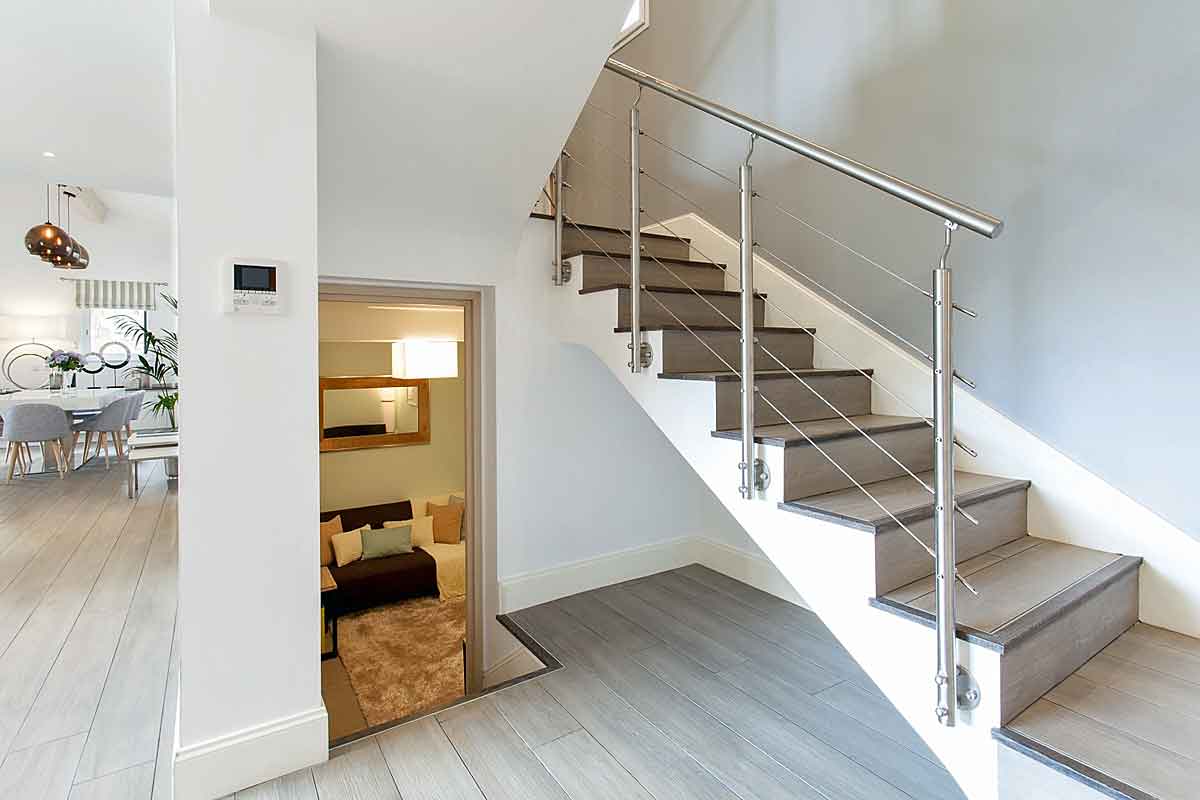 From the hallway at the base of the stairs: