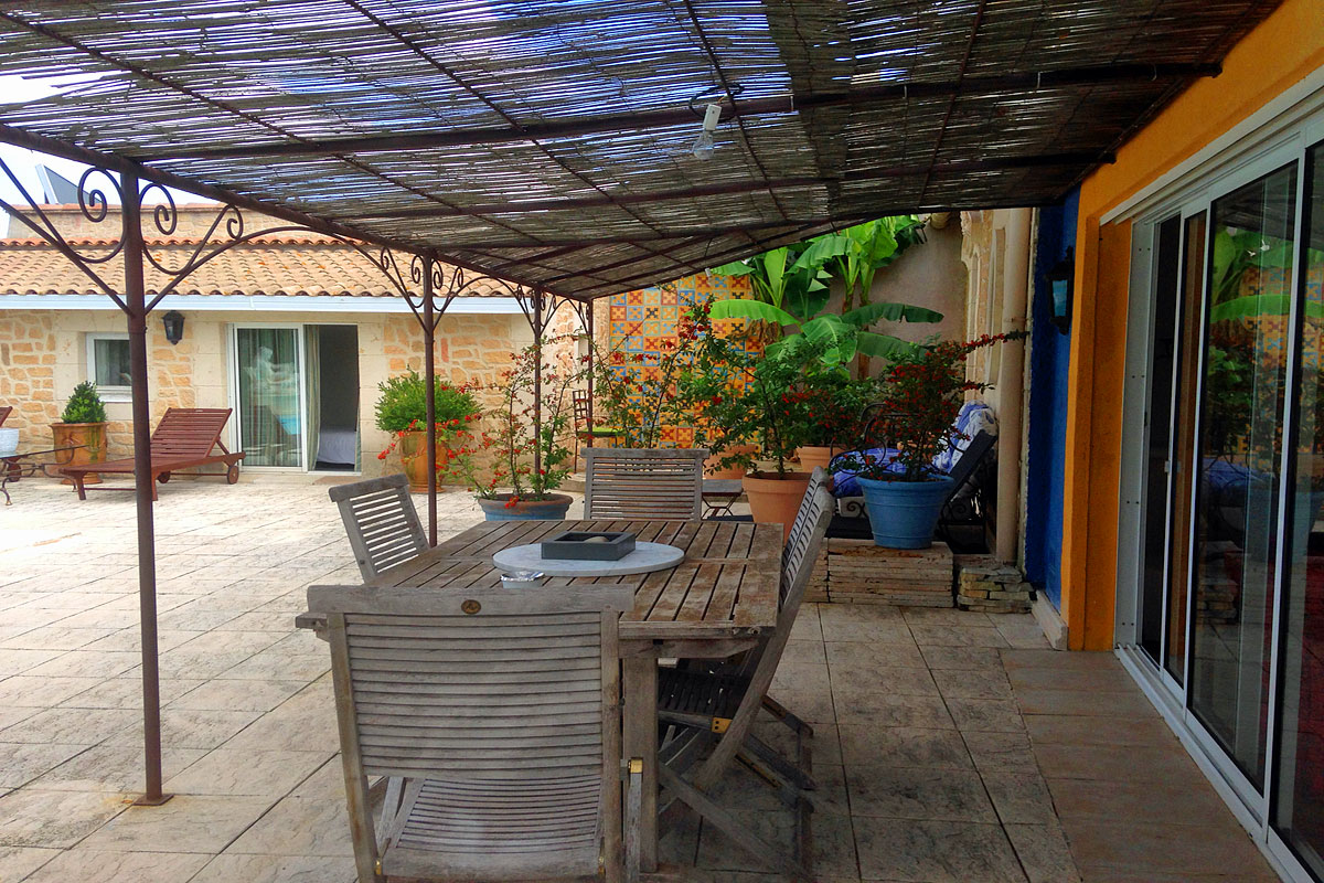 Not far from Beziers, the Canal du Midi and the Mediterranean beaches, set on the edge of a wine producing village, a short walk away, this South of France holiday property is set in 3 renovated buildings. It has a total of 4 ensuite bedrooms which have air-conditioning, an interior with clean lines, private heated pool (no extra cost), a large garden and lots of lovely outside areas to relax in with amazing Moroccan influences both inside and out.