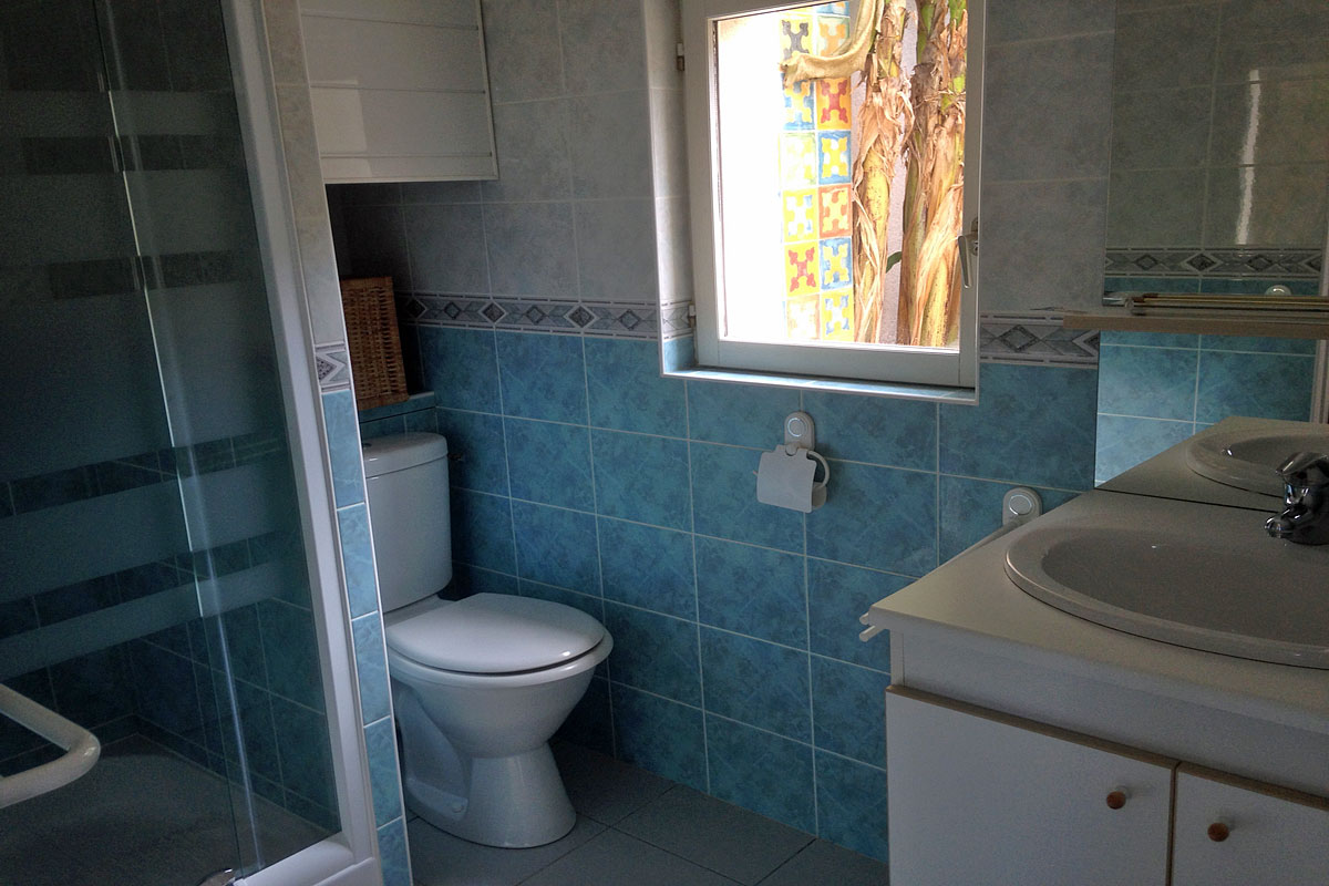 Accessed from the terrace just by the pool, this double room with air conditioning, encorporates a double bed (140cm) and ensuite shower room with wc.