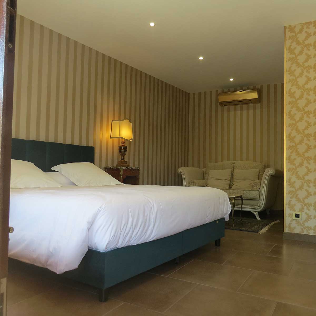 The first bedroom - Bedroom 3 - A large room with a Super king size bed (180cm x 200cm) and air conditioning. There is an ensuite shower room with wc. A lounge/sitting area with doors to the outdoor terrace.