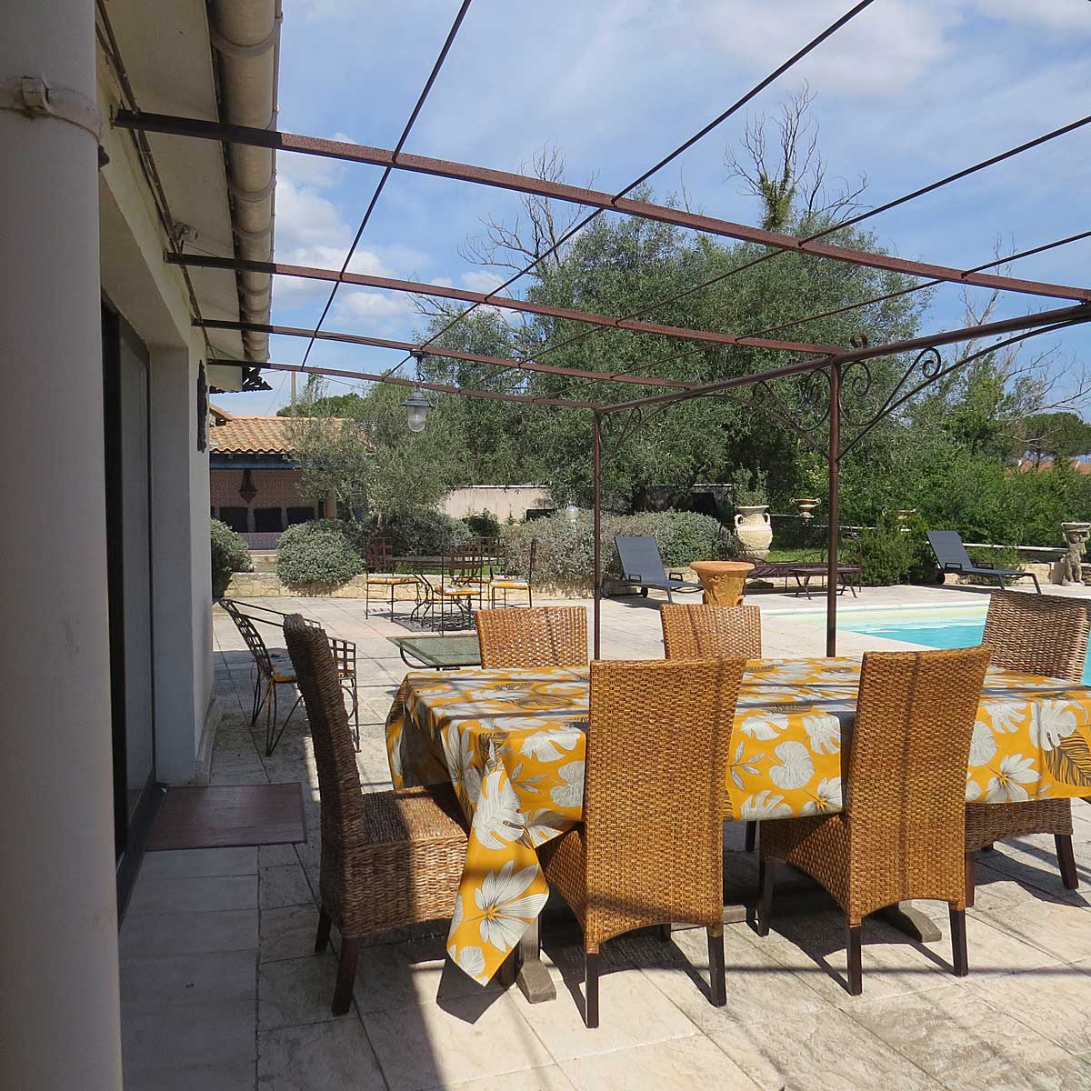 This South of France holiday villa is on the edge of Maureilhan, (approx 10 minute walk away) a typical Languedoc wine village, village shops, post office, family bar-restaurant.