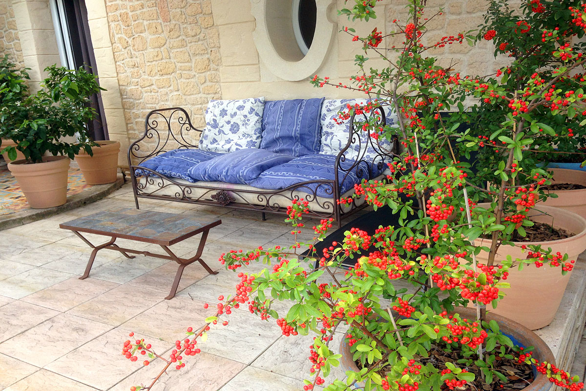 The Owner has created a further 25m2 of terracing out into the Olive trees, with an ornamental fountain.