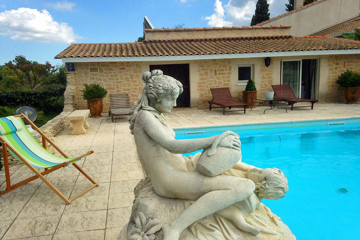 South of France contemporary and modern holiday villa to rent, Air-Conditioned, walking distance to the local village, with a huge private heated pool, 4 en suite bedrooms, summer kitchen, large garden, Wi-Fi. Great for a villa Holiday near Beziers, Languedoc-Occitanie in the South of France. Complimentary meal offered in a canal-side restaurant*