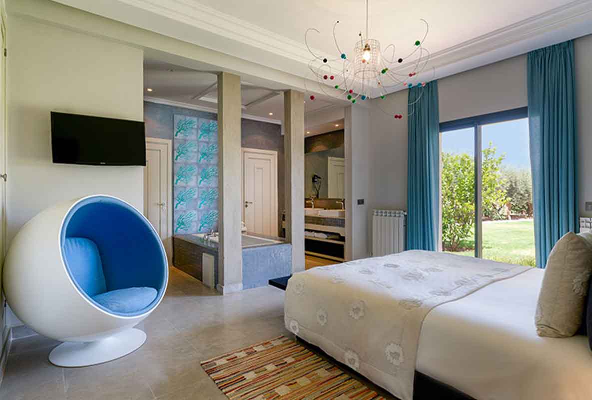 Deluxe Moroccan Villa near Marrakech to sleep 8. A beautiful Moroccan villa nestled in a charming region of Marrakech go sleep 8 in 4 double en suite bedrooms. The villa offers 6000m2 of grounds, a large heated pool, spa and fitness room. Concierge services available.